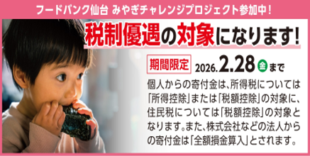 ●フードバンク仙台様よりご寄付のお願い(税制優遇の対象になります)